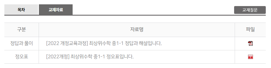 최상위수학 중1-1 답지 PDF 다운로드 방법